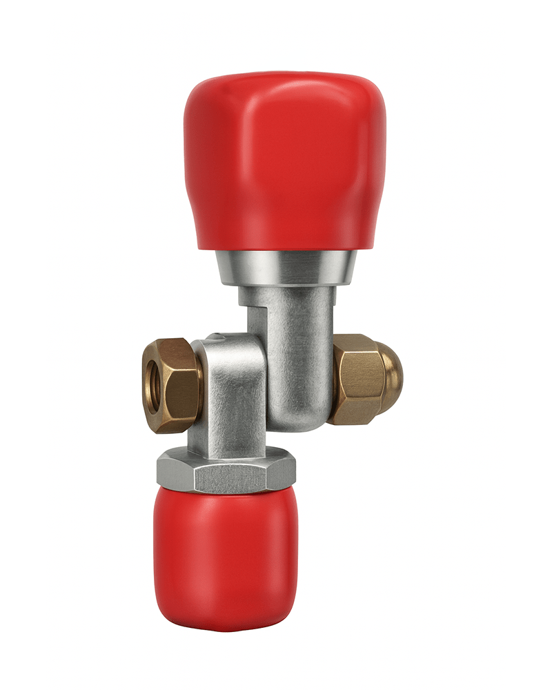 Корпус изготовлен из прочного металла, рабочие элементы выполнены с высокой точностью, что обеспечивает надёжную герметизацию соединения даже при большом рабочем давлении. Защитные красные колпачки предохраняют резьбу от повреждений и попадания загрязнений при хранении и транспортировке.