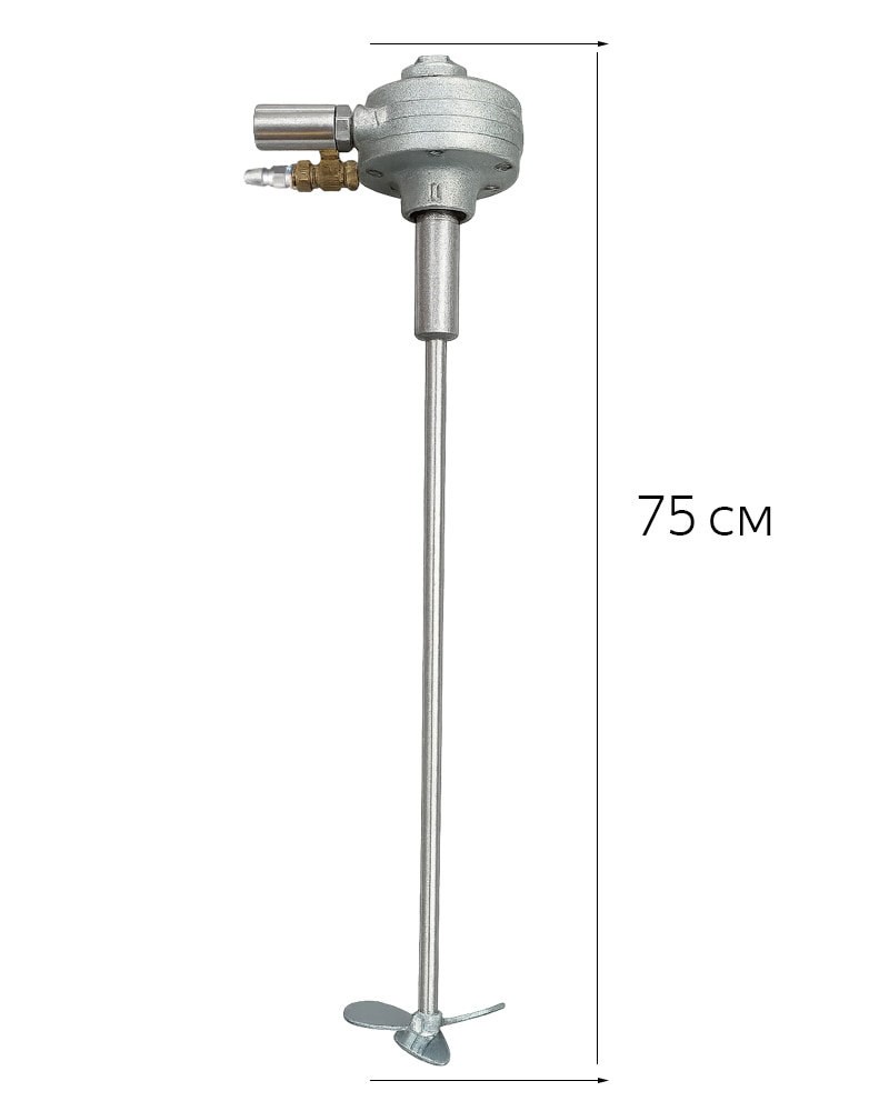 Пневматическая мешалка для однородного перемешивания ЛКМ, грунтов, клеёв, смол и вязких составов в стандартных ёмкостях до 20 литров. Устанавливается сверху (без внешней струбцины), работает от сжатого воздуха, комплектуется валом с винтовыми лопастями для быстрого и равномерного перемешивания малого объёма. Лёгкий запуск и плавная регулировка оборотов обеспечивают стабильную работу на покрасочных постах.
